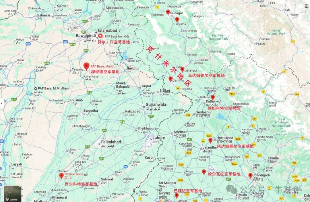 图1. 印巴空军主要机场分布图。