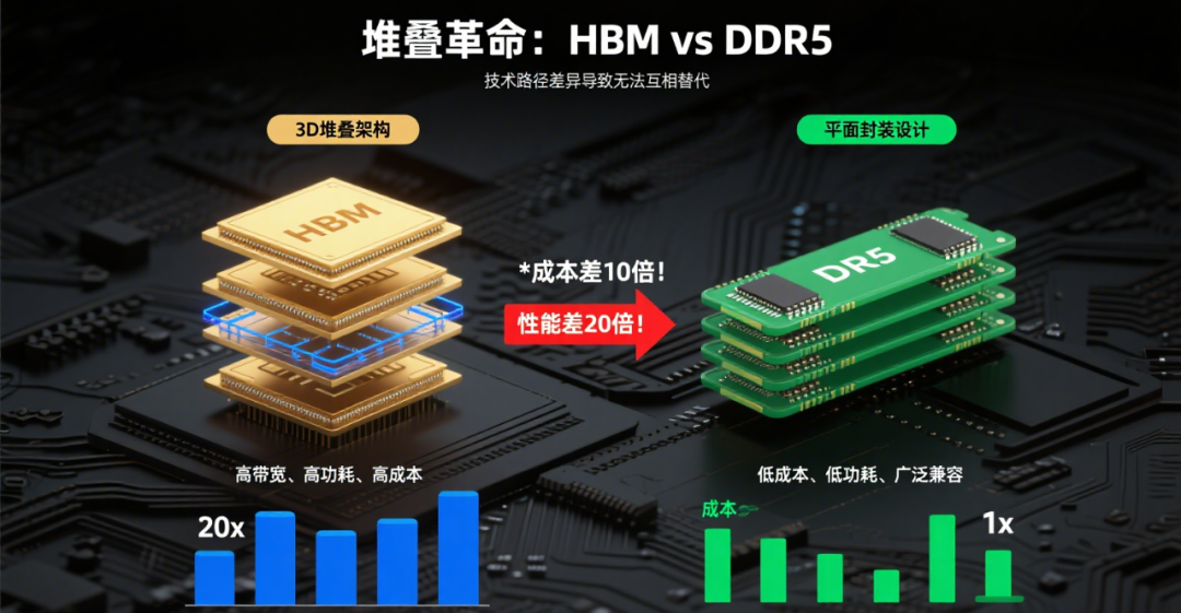“堆叠”只是手段,“离处理器有多近”和“带宽有多高” 才是关键。HBM赢在“近”和“快”,DDR5赢在“便宜”和“灵活”。